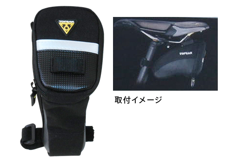 小型サドルバッグ。タイヤチューブ、鍵、工具などを収納できる。